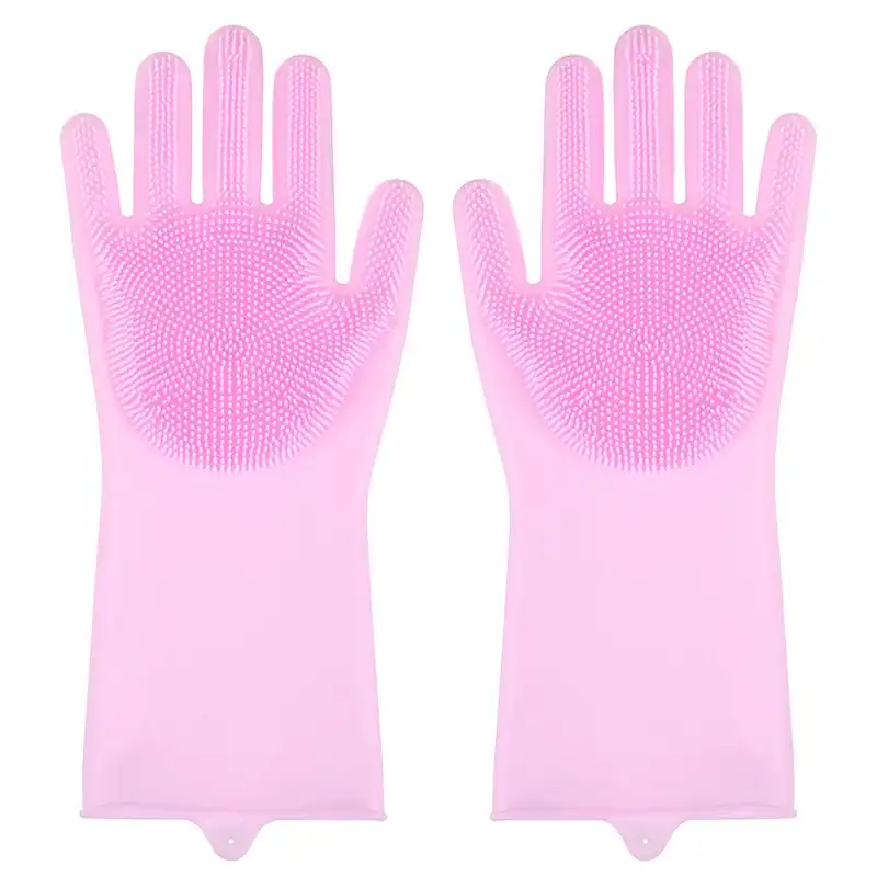 Pet Grooming Glove Silicone Pets Dog Cat Bath Glove Wash Brush Washing Tools Gentle Massage Shampoo Anti Scratch Fur (Pink)