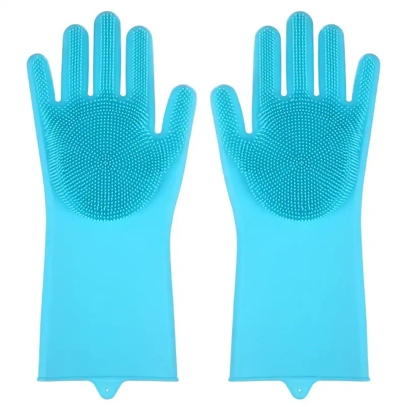 Pet Grooming Glove Silicone Pets Dog Cat Bath Glove Wash Brush Washing Tools Gentle Massage Shampoo Anti Scratch Fur (Blue)