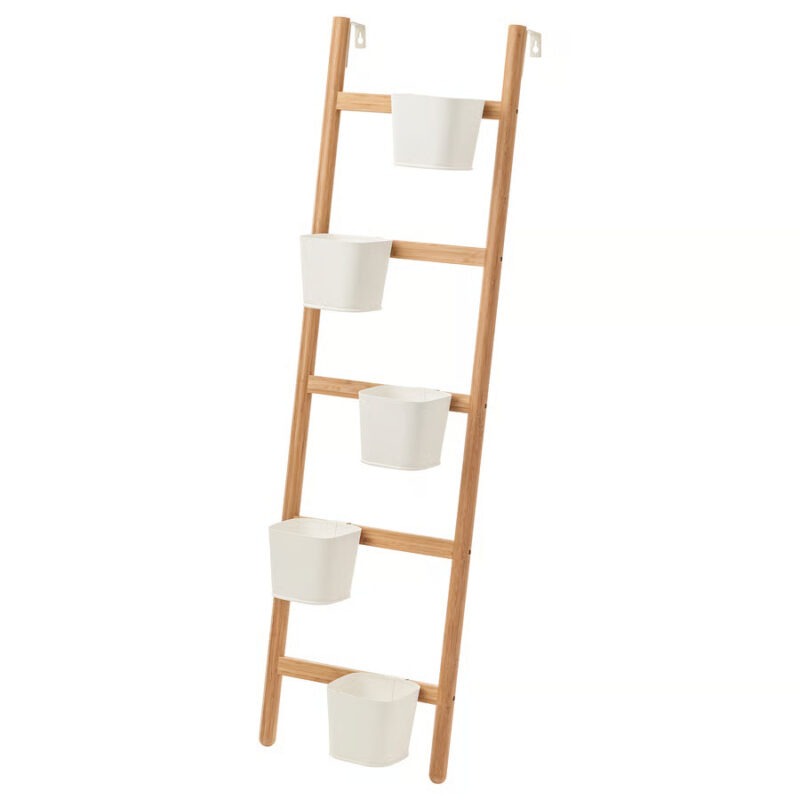 SATSUMAS Plant stand with 5 plant pots, bamboo/white, 125 cm