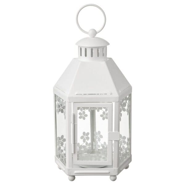 KRINGSYNT Lantern for tealight, in/outdoor, white, 21 cm