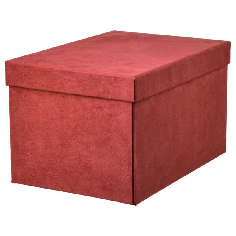 GJÄTTA Storage box with lid, velvet brown-red, 18x25x15 cm