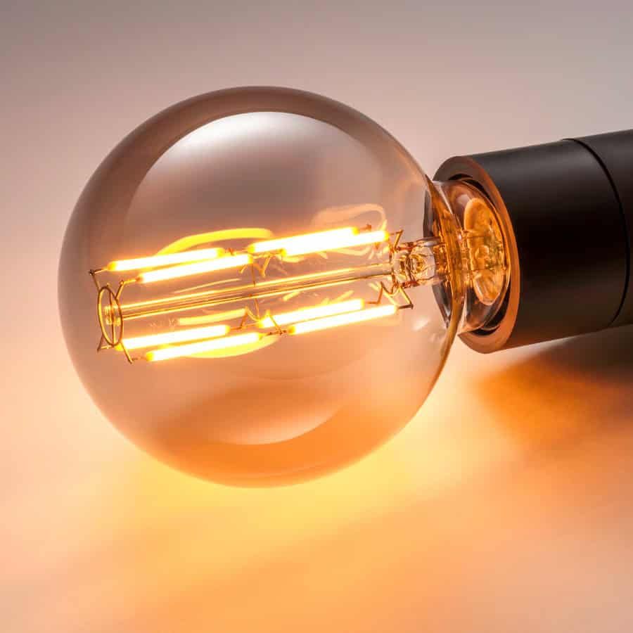 LED light bulbs are available with different colour temperatures that make the light feel more or less warm. This particular light bulb emits the same warm glow as candlelight (1800 Kelvin).