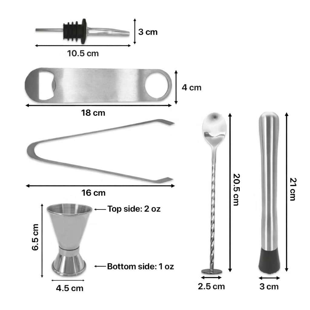 All-In-One Set: Comprehensive bar tools set with all essentials for mixing, muddling, pouring, and serving.